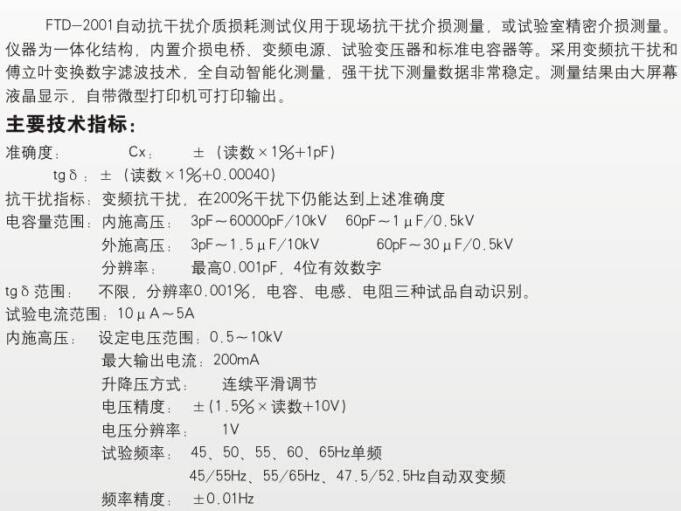FTD-2001自動(dòng)抗干擾介質(zhì)損耗測試儀